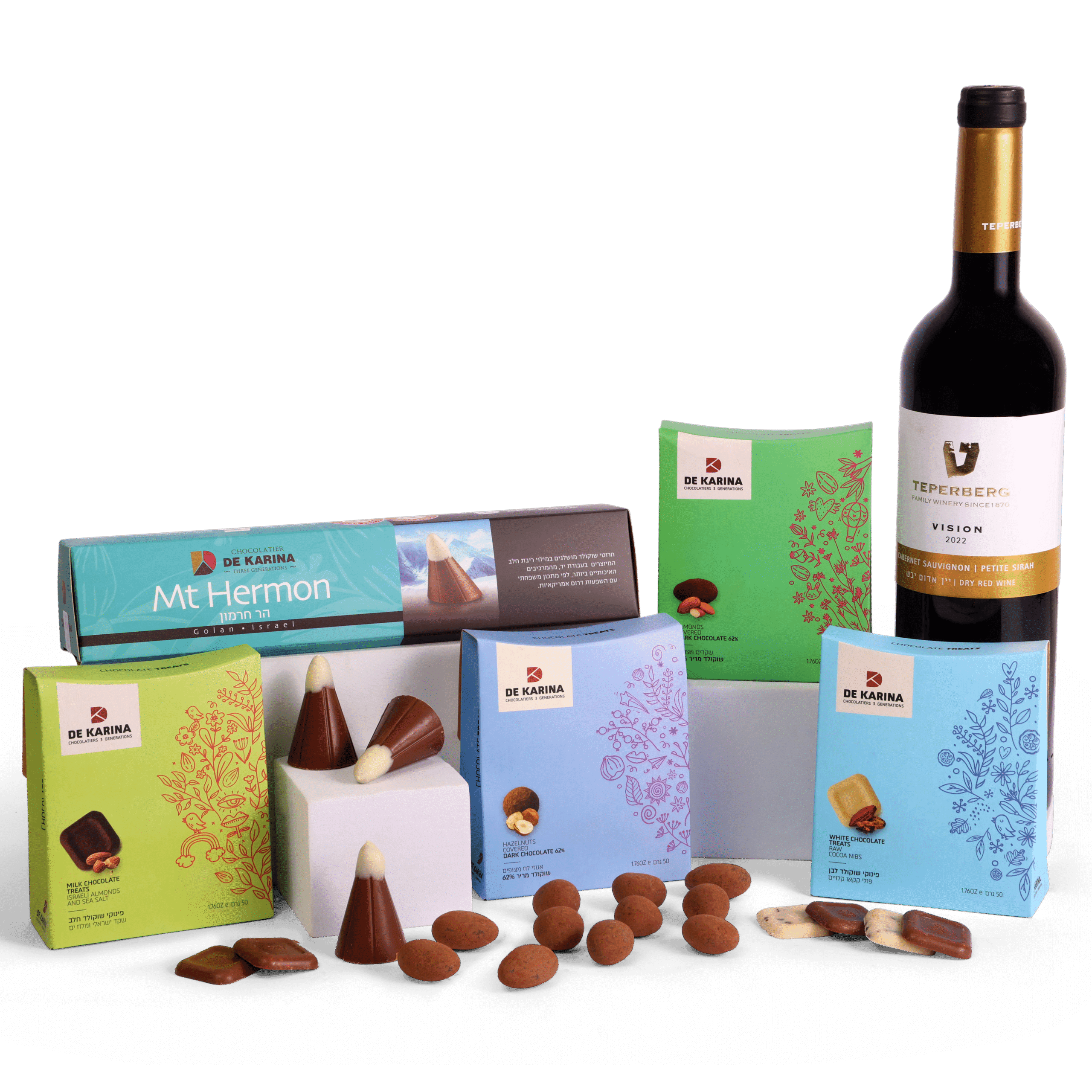 - הר חרמון – חמישה חרוטי שוקולד חלב מצופים שוקולד לבן במילוי ריבת חלב (85 גרם)